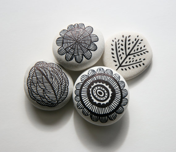 Dziś po prostu uwielbiam moje nowe odkrycie:) Otóż sami zobaczcie, co można kupić na Etsy.com! Malowane kamienie! Brzmi banalnie? Może i brzmi, ale wygląda uroczo! Przyznam, że sama chętnie położyłabym sobie takie kamienie na przykład na balkonie lub mogłabym użyć je jako ciężarki do papieru! Są prześliczne! I jakże łatwo zrobić je samemu!