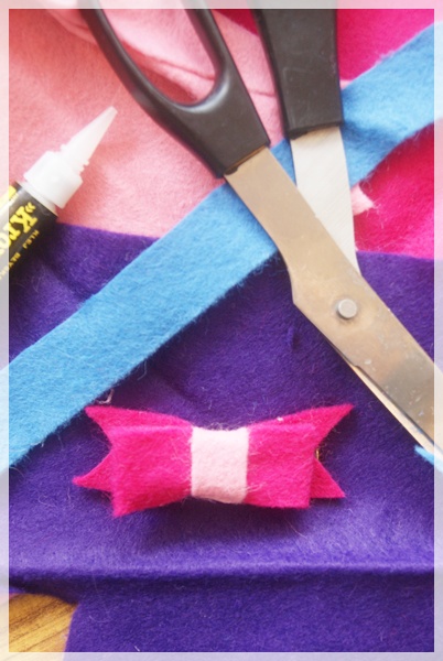 Wykonanie jest bardzo proste. Wystarczy przygotować kawałek kolorowego filcu, który zakupicie np. w Empiku lub w sklepach hobbystycznych, klej typu kropelka, nożyczki i stare, niepotrzebne spinki. Kokardkę zróbcie tak jak na zdjęciu. Z tyłu sklejcie środek klejem. A na koniec przyklejcie gotową kokardkę do spinki. I gotowe!
