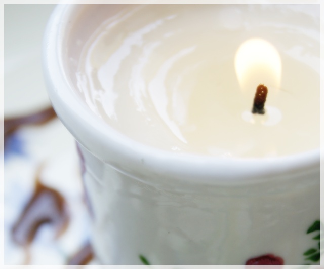 Wykonanie jest bardzo proste i podobne do cytrusowych świec do masażu, które znajdziecie TUTAJ. Zaglądnijcie tam – na zdjęciach przedstawiłam sposób umieszczania knota. Olej, masło i wosk roztapiacie w kąpieli wodnej lub w mikrofalówce. Po ściągnięciu z ognia dodajecie kilkanaście kropelek olejku zapachowego. Jego intensywność ma Wam odpowiadać. Całość dokładnie mieszacie i przelewacie do przygotowanego pojemniczka z knotem. Świecę odstawiacie w chłodne miejsce do zastygnięcia. Wtedy ucinacie knot, tak, żeby wystawał tylko jego kawałeczek.