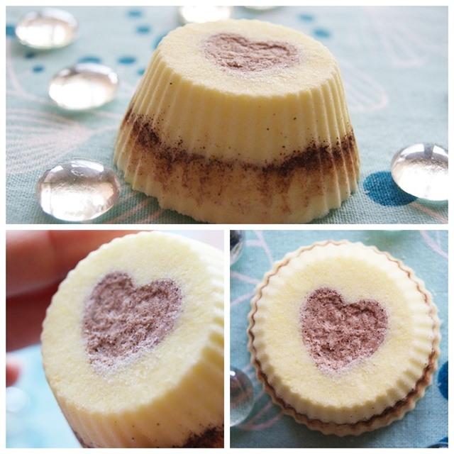 Ta z serduszkami to Babeczka Trufla Malinowa z kakaowym spodem i kakaowym masełkiem. I oczywiście z miłością!