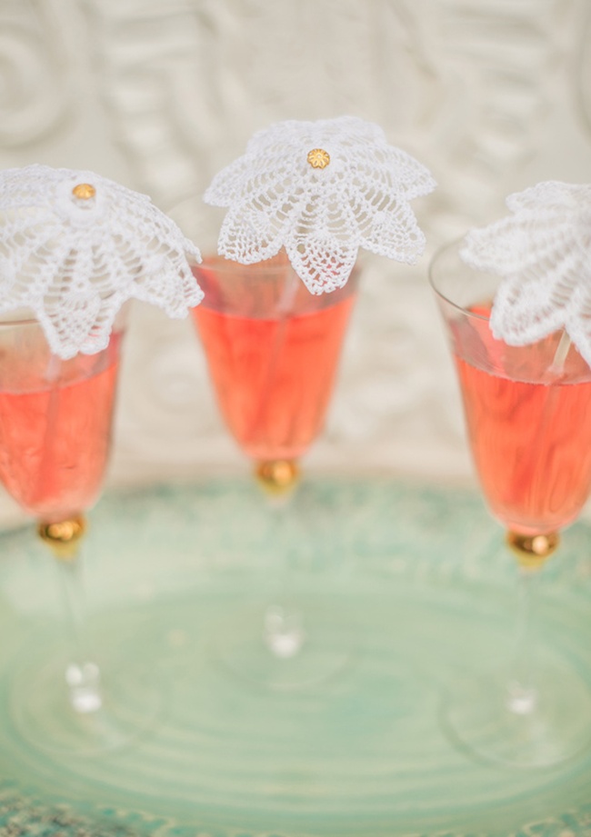 Jak to prawdziwa koronko-uwielbiaczka, nie mogłam oderwać oczu od tych prześlicznych koronkowych parasolek do drinków! Wykorzystane one były podczas pewnego romantycznego wesela, ale myślę, że i na mniej specjalne okazje doskonale się nadadzą! A może zupełnie inaczej jeszcze – jako parasolki dla lalek Waszych córek? Takie, jak prawdziwe damy miewały:)