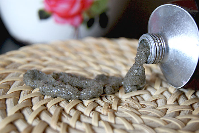 Jest to kosmetyk z kategorii ciekawych. Zazwyczaj bowiem do stóp stosuje się pumeks tradycyjny, twardy, w kamieniu. Tutaj mamy jego alternatywę. W aluminiowej ładnej tubce ukryła się pasta, która z wyglądu przypomina ciemne, pisakowe błoto.Dosyć… nieatrakcyjne… ale do stóp to akurat pasuje jak ulał 🙂