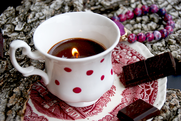 Czekoladka Montignac – Blisko Natury / masła i oleje – Blisko Natury/ knot – Zielony Klub/ filiżanka – starocie / olejek pomarańczowy – Zielony Klub / bransoletka – wkrótce w Lili in the Garden