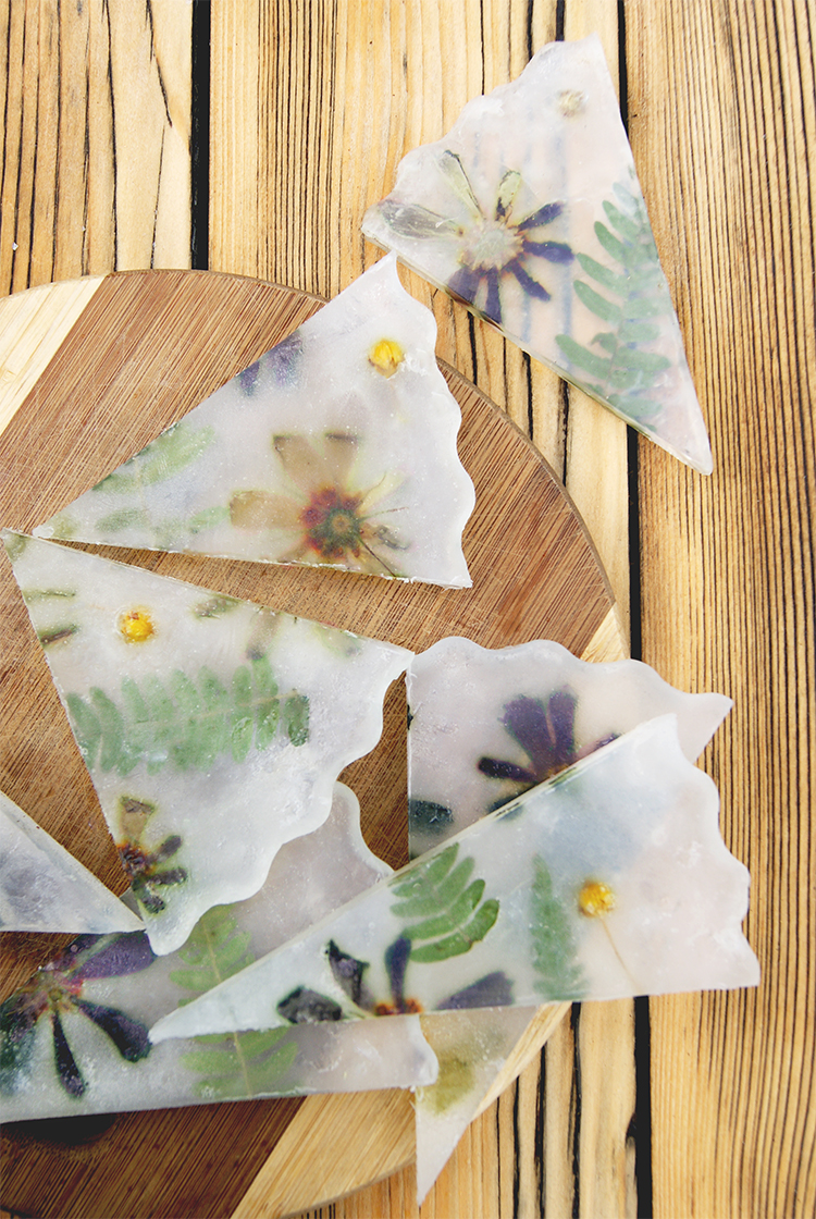 Teraz zaczynacie Waszą sztukę! W szybkim tempie układacie suszone kwiaty i liście na powierzchni mydła. Lekko się w nim zatopią. Jeśli będą wystawały, możecie zalać je kolejną partią roztopionego mydła (ponownie podgrzać odłożoną wcześniej porcję). Wydaje mi się jednak, że lepszy efekt uzyskuje się bez ponownego zalewania (taka nauczka na przyszłość). Ucząc się na swoich błędach wiem też, że dobrze jest mieć pod ręką spray z alkoholem, który zapobiega powstawaniu bąbelków na powierzchni mydełka. Wystarczy je po prostu lekko spryskać.