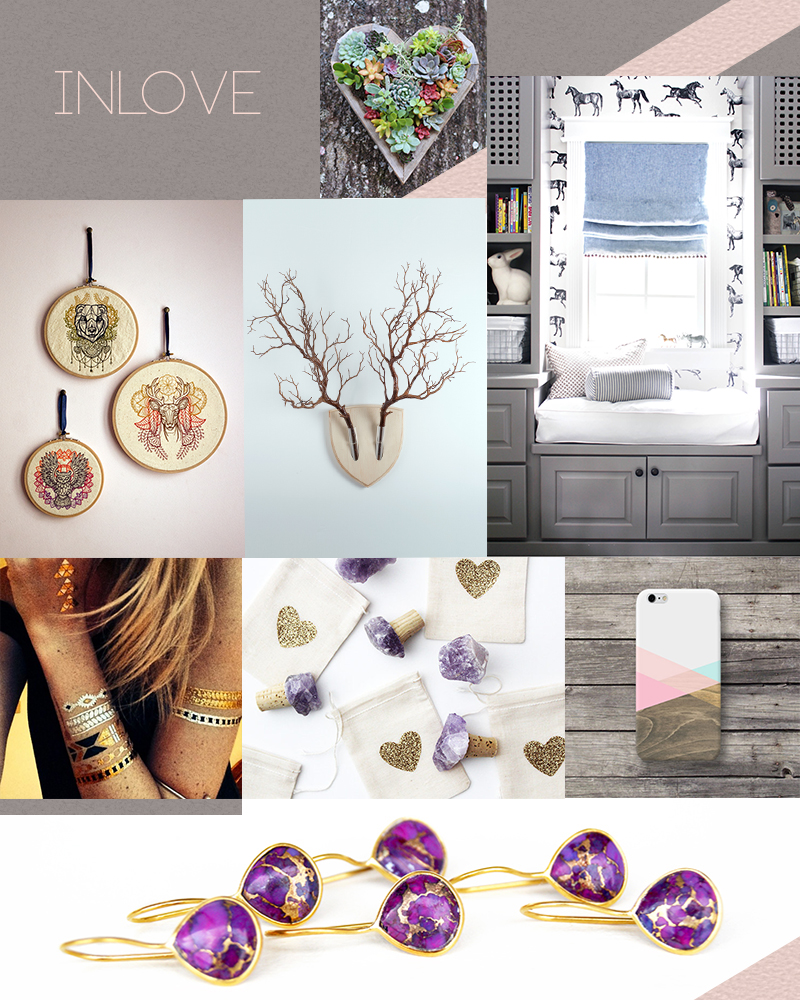 2. Równie mocno jak sukulenty uwielbiam tamborki na ścianach. Sama mam klika. Te tutaj chętnie dodałabym do kolekcji! Cudowne motywy! Feltress