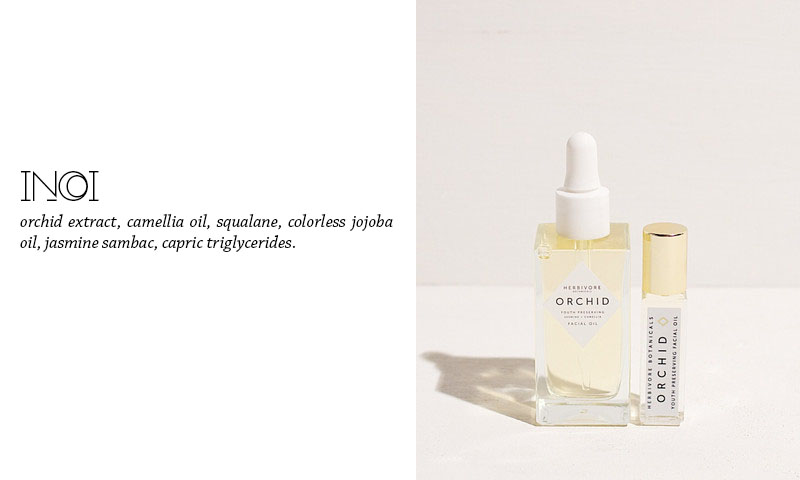 Ale to nie wszystko – mamy jeszcze dwa olejki. W mocno żółtym olejku Phoenix prym wiedzie dzika róża, chia (nasiona szałwii) i rokitnik. Do tego dodano koenzym Q10 oraz olejek z róży bułgarskiej i olej z nasion meadowfoam. Jeszcze bardziej intryguje mnie olej o nazwie Orchid. Tutaj znajdziemy na pierwszym miejscu ekstrakt z orchidei, do tego dodano olej z nasion zielonej herbaty, jojobę, skwalan i jaśmin.