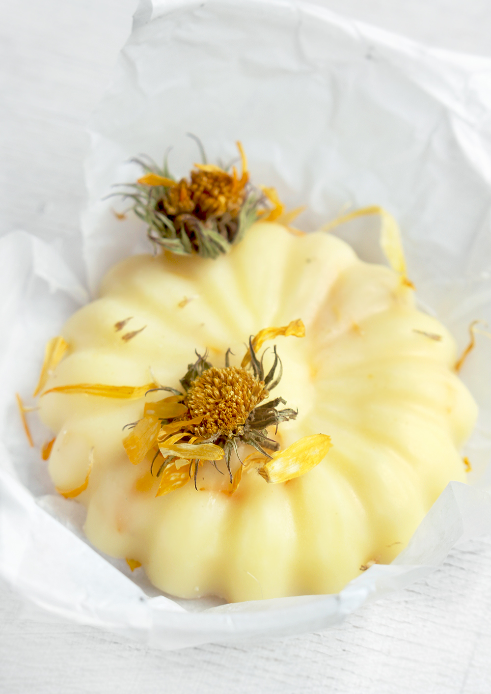Jak stosujemy te cuda? Wsmarowujemy w wilgotną skórę po kąpieli. Spokojnie, powolnymi ruchami, nie warto tu się spieszyć. Delektujmy się! Odrywamy kawałeczek balsamu, roztapiamy go w dłoniach i masujemy skórę. Macerat można także zmieszać z ulubionym balsamem lub dolać łyżkę do kąpieli. Balsam w kostce jest cięższy, gęstszy, dłużej go czuć na skórze, ale to właśnie domena maseł z woskiem. Jeśli wolicie coś lżejszego, sięgnijcie po olejek. Oba wspaniale koją, odżywiają i zmiękczają skórę. Jest przyjemna w dotyku i zdrowsza. Nagietek pielęgnuje, wspomaga regenerację i łagodzi podrażnienia.