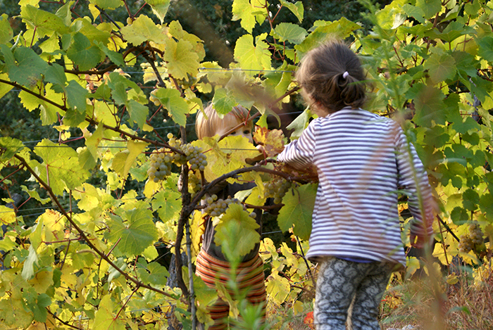 Ale i tak najwspanialsze było winobranie. Winniczka duża jeszcze nie jest. Dopiero pokazuje swoje możliwości. Dopiero wina się kształtują, a winiarze uczą. Winogrona są cudownie słodkie. Samo ich zrywanie nie wydaje się nawet pracą. Jest czystą przyjemnością. Z widokiem na jezioro, w promieniach ciepłego październikowego słońca nabiera romantycznego wydźwięku. Przy uśmiechach, radosnych krzykach dzieci, podjadającym owoce prosto z krzaka psie-niedźwiedziu, bawiliśmy się wspaniale. A jeśli wino będzie smakowało choć trochę tak dobrze jak sok ze świeżo wyciśniętych gron rieslinga, to podbije świat!